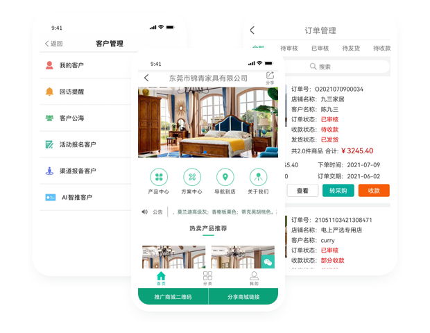 一部手机搞定业务员招商,分享订货商城、拉新拓客、生成客户档案;一步手机搞定业务员外出客户拜访、代客下单、查看客户订单数据。