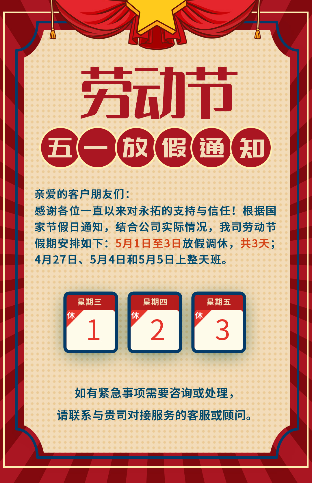 主页 > 新闻资讯 > 公司新闻永拓数字|2024年五一劳动节放假通知